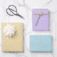 These Pastel Polka Dot Pattern Wrapping Paper Sheets features hand-drawn polka dots scattered across contrasting pastel-coloured backgrounds (yellow, purple, blue), creating a playful and adorable design. Perfect for wrapping children's Easter basket gifts or small party favours, these sheets add a sweet and whimsical touch to your presents.