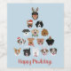 Illustration of many different breeds of dogs. They are dressed in Holiday attire. These dogs head are used to create the shape of a Christmas tree for the Holiday season.
