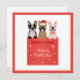 Illustration of three French Bulldogs popping out of a mailbox for letters to mail to Santa Claus.