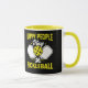 "Happy People play pickleball" coffee mug. The perfect accessory for pickleball enthusiasts who live and breathe the game to showcase their love for pickleball. The vibrant design boldly declares your dedication to the sport with the playful slogan "Happy people play pickleball".
