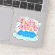 Fun sticker featuring happy cartoon pigs having a pool party. Hand-drawn, digitally coloured art for decorating your laptop, journals, etc.