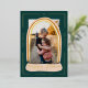 Unique, modern, and magical modern snow globe Christmas photo holiday card to send to your family and friends this holiday season. Design features a unique photo frame with a modern rainbow stripe with a gold foil stripe snow globe frame. "Happy Place" is displayed in an elegant gold foil script within the snow globe base. A simple modern gold foil border frame creates sections to display the year, holiday greeting, and family signature. Simple gold foil stars and falling snow overlay the photo to add a twinkle and a magical look. The reverse side features a complementing modern multi-coloured and gold stripe design. All artwork and illustrations are hand-drawn original artwork by Moodthology Papery.