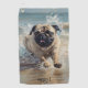 Add a cheerful touch to your golf game with this adorable golf towel featuring a playful pug at the beach. The vibrant design captures a sunny seaside moment, bringing smiles whether you're teeing off or wiping down your clubs. Personalize the customizable banner with your name, initials, or a fun message to make it uniquely yours or create a perfect gift for a dog-loving golfer.