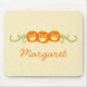 Happy Pumpkin Swirls Halloween Mousepad featuring a trio of smiling carved pumpkins and a cascade of swirls and dots. This fun mousepad will give your workspace a charming bit of Halloween flair! Easy to customize, simply add the personalized text of your choosing. Fonts and text colours may be changed to suit your preferences and the design elegant may be moved/resized to accomodate more or less text.