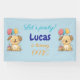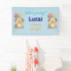 Let’s pawty! Celebrate your little boy's 1st birthday with this adorable “Happy Puppy” banner. Featuring a kawaii-style design, it showcases two sweet puppies holding balloons alongside a birthday cake topped with a single candle as well as the centered message "Let's pawty! (Name of birthday boy) is turning ONE". This banner is cute for indoors and outdoors and the perfect decoration for a fun and joyful first birthday celebration. Designed by Best Baby Gifts - given with love.