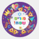 Happy Purim Basket Gifts, Decoration, Hebrew Text Classic Round Sticker