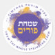 Happy Purim Purple Personalized Hebrew Classic Round Sticker