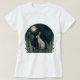 A happy rabbit sits in the moonlight in flowers and other plants with tall trees in the background.
