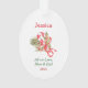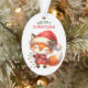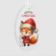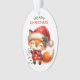 This is a cute Christmas ornament for parents or grandparents to give to a child, but it can be easily customized as a gift for anyone. The front of the ornament has an image of a smiling red fox wearing a Santa hat. He has been busy decorating, as he is holding a string of colourful Holiday lights. The green and red text says "MERRY CHRISTMAS". The back of the ornament has your custom text which is separated by a small candy cane and holly bouquet. Easily change the text to anything you'd like!