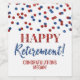Happy retirement custom wine bottle label with blue and red glitter pattern confetti