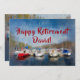 Happy Retirement Celebration Invitation Card, designed with sailboats on blue tranquil water in a scenic setting. Honour a special person about to retire with a party in their honour. To personalize, simply insert the person's name and your event details using our easy template.