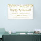 Retirement banner sign with a gold confetti border and the title HAPPY RETIREMENT and # years of service in a modern script font and personalized with the retiree's name and your optional text field for the name of the company, school or organization's name or personal message at the bottom. CHANGES: Change the background colour and/or change the text font style, size, colour or placement of the non+script text for a custom look in EDIT. BANNER OPTIONS: The sample is shown in the 3x5' size; other sizes are available on the ordering page as well as the option of transferring the design to a foam board, poster, tapestry or other product or have the designer convert it to a DIGITAL DOWNLOAD file for printing locally BEFORE ordering. ASSISTANCE: For help with design modification or personalization, colour change, resizing, transferring the design to another product or if you would like coordinating items, contact the designer BEFORE ORDERING via the Zazzle Chat MESSAGE tab or email makeitaboutyoustore@gmail.com.