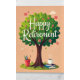 A cheerful illustration featuring a large, vibrant tree with lush green leaves
