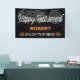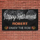 Happy Retirement party banner with a vintage motorcycle illustration, custom name, and the saying "Enjoy the Ride" with a flame motif. Wish your biker a happy retirement on the road!