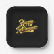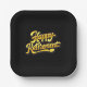 This stylish square paper plate features a deep black background with softly rounded edges, creating a sleek, modern look. Centered in bold golden‑yellow script, the phrase “Happy Retirement” shines with celebratory warmth. The elegant cursive lettering adds a touch of sophistication, making this plate an ideal choice for retirement parties, office send‑offs, or any gathering honoring a well‑deserved milestone