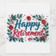 A vibrant, celebratory scene unfolds as colorful flowers and leaves gracefully sway in a gentle breeze. The cheerful text 'Happy Retirement' stands out, adorned with sparkling confetti and ribbons. A slow pan across the arrangement reveals intricate details of the floral elements, while warm, diffused lighting enhances the joyful atmosphere. The composition feels festive and inviting, perfect for a retirement celebration.