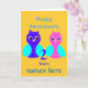 A pair of Owls, pink and blue with turquoise wings, add names to front of card. You can also change the other text, the number of years, add your message and your names. Everything is set ready for easy customization, fonts colours, places on card. Make it truly personal.