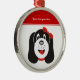 Happy silly puppy custom ornament, featuring a silly puppy with red bow on it’s head.
