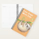 A fun planner for all your important dates, appointments and goal tracking, featuring a whimsical watercolor illustration of a happy sloth hanging from branch on peach background. Personalize with name or custom title