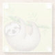 Whimsical watercolor illustration of a happy sloth hanging from branch on yellow background