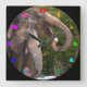 Happy smiling cute elephants playing in the snow. square wall clock