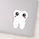 Vinyl decal / contour sticker with a drawing of a big white tooth with a cute kawaii smile and big happy eyes.