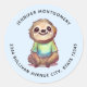 Happy Smiling Sloth Sitting Relaxed Address Classic Round Sticker