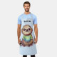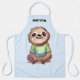 Apron with an adorable illustration featuring a happy looking sloth wearing a green t-shirt. Sitting cross-legged looking relaxed.