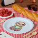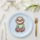 Paper plates with an adorable illustration featuring a happy looking sloth wearing a green t-shirt. Sitting cross-legged looking relaxed.
