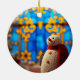 Happy Snowman Christmas – Blue Faux Stained Glass Ceramic Ornament