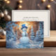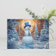 Joli bonhomme de neige dans une carte de voeux de Noël enneigée en forêt. Personnalisé au dos avec votre message et votre nom. Contactez-moi pour obtenir de l'aide sur votre personnalisation ou pour demander des produits Zazzle correspondants ou coordonnés supplémentaires.