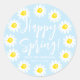 Happy Spring pale blue daisies frame custom script Classic Round Sticker