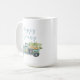 Cute tasse de café pour le printemps! Comprend un camion vintage bleu vert avec des carottes et des fleurs blanches à l'arrière. Sur la porte latérale se trouve un chapelet de carottes. "Happy Spring" est dans une jolie typographie bleue. Cette tasse vous rendra heureux.