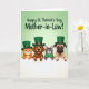Designed with a horizontal row of four cartoon-style animals peeking over a white ledge, this St. Patrick’s Day design feels like a friendly little group photo 💚. Two dogs sit on the left—one with an open-mouthed grin and bright eyes, the other with a more serious look and a darker snout—while an orange tabby and a gray striped cat lean in beside them as if sharing a cozy moment. The background is a soft gradient of spring green that keeps the scene light and airy, like early morning sunlight. Each animal wears a tall emerald top hat with a gold rectangular buckle, and the gray striped cat adds a green bow tie that hints at a sweet, thoughtful bond with the others ☘️. Across the top, large curved lettering in deep forest green spells out a warm greeting, centered above their heads and arching like a banner. The animals’ wide eyes and close spacing make them look like they’re posing together, with a gentle, affectionate energy in the way they cluster shoulder to shoulder. The white ledge runs straight along the bottom, with their paws resting on its edge beneath the green hats and gold buckles.