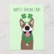 Brown dog with St. Patrick's day attire. Kiss Me I'm Irish.