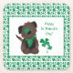 Happy St Patricks Day Dog Four Leaf Clover Green Square Paper Coaster