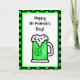 Bubbly Beer Happy St Patrick's Day card. Funny drinking humour.