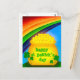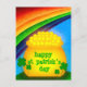 A colourful and bright Saint Patrick's Day design that says "Happy St. Patrick's Day" on a pot of gold at the end of a rainbow.