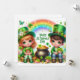 Happy St Patrick's Holiday Card with a Cute Boy and Girl, Pots of Gold, Clovers, Flowers, Animals and a Rainbow