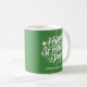 Awesome coffee mug featuring a Happy St. Patrick's Day typography design framed by festive shamrocks. Add your custom text to personalize. Whether you're drinking regular coffee or Irish Coffee, the mug will certainly make you feel a wee bit Irish.