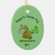 I was disappointed with the writing on the ornament. It’s just too small and can barely be seen. Also it was not as obvious on screen that the position of the hole for hanging was centered on person’s forehead. Writing that came with chosen frame is too small and can barely be seen.