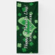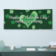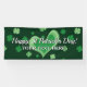 Happy St. Patrick's Day party banner with clovers. Add your own custom text. Cheerful design with script typography template. Personalized decorations for festive party. Great for office, work, school, home, business etc. Green shamrocks with big heart. Irish pride design. Hang this sign up anywhere.