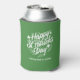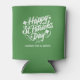 Get your green on with these awesome double-sided can coolers featuring word art typography that reads "Happy St Patrick's Day" framed by white shamrocks. Personalize with your custom text or delete. Perfect for your St. Paddy's Day party and keeping your green beer cold!!