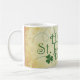 Enjoy this Happy St. Patrick's Day mug with a rustic look & feel, fancy font and shamrock!
