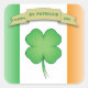 This is a Happy St. Patrick's Day Button depicting Ireland's Flag and a Four Leaf Clover in the Middle.
