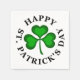 Paper napkins with a green shamrock clover design and a black "HAPPY ST. PATRICK'S DAY" text around it.