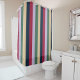 This happy stipes shower curtain is part of a collection to brighten up your home. It combines the natural tones and pastel colours that were popular over the past couple of years with a modern twist of bright magenta red to bring it right up to date. Mix and match with single colour bath mat and towels to complete the look.