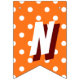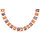 Decorate for Thanksgiving with this colourful "Happy Thanksgivin'" bunting flag banner! Features alternating designs of white polka dots on orange flags, and burgundy and white striped flags.