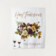 Rusty orange, yellow and ivory cream autumn fall flowers with dried leaves and foliage, two red wine glasses and "Happy Thanksgiving" typography script. ++++++++++++ Personalize it with your family name!