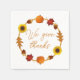 Thanksgiving or autumn party napkins with custom text. A circle of fall leaves, pumpkins, acorns and sunflowers makes a border for the printed text - sample is "Happy Thanksgiving". Use in a classroom, for a fall wedding reception, or any special gathering at this time of year. Napkins have many options including colour, style and size.